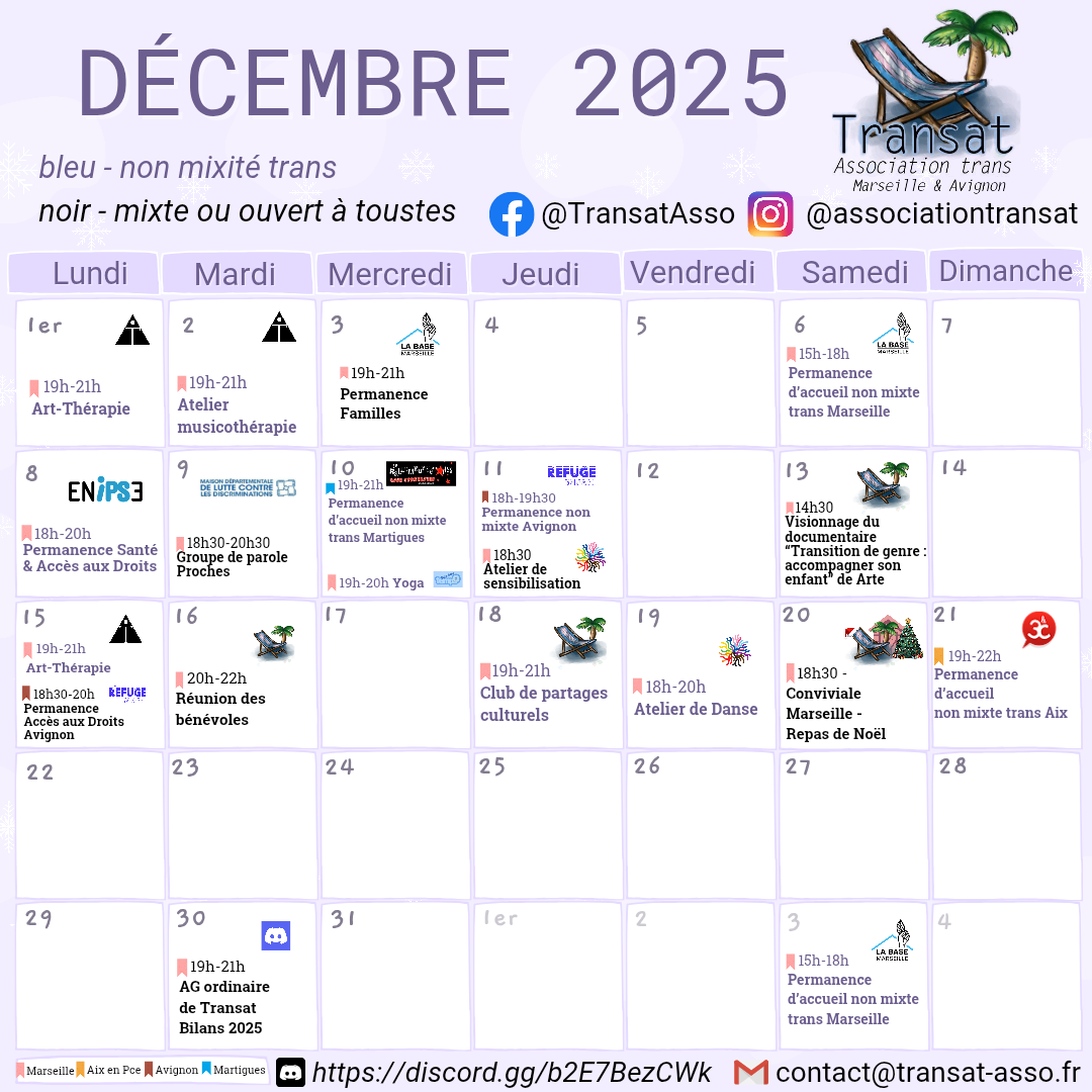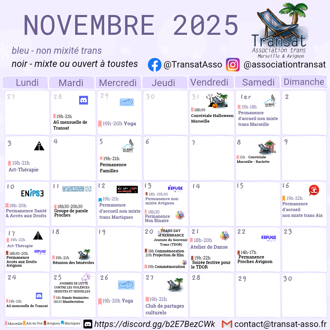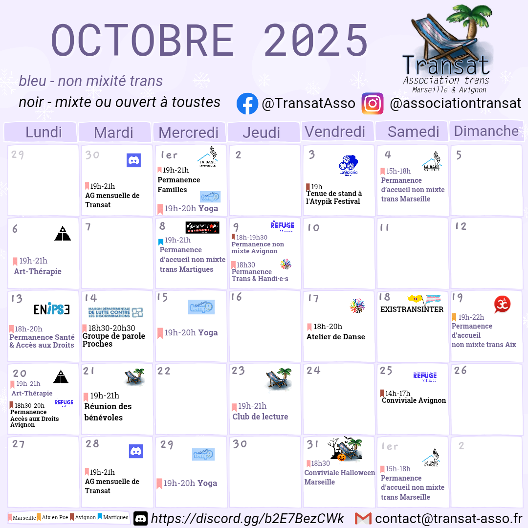 L’association Transat est une association de personnes trans, à visée militante et d’entraide, basée sur Marseille, Avignon et leurs environs.